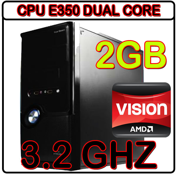 CPU AMD DUAL CORE E350 1.6GHZ X2=3.2GHZ ,2GB RAM, 160GB , DVD ,HDMI ATI RADEON HD6310