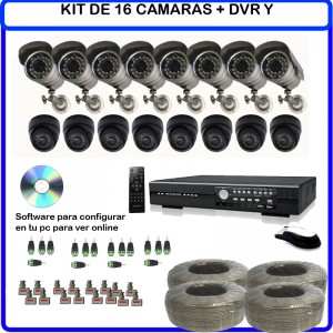 Kit de 16 Camaras de Seguridad + Gabador DVR ,Cable de 400 mts + 32 Conectores video, 32Conectores e